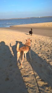 Manchmal gibt es auch Ausflüge ans Wasser. Unser begleitender Gasthund hat sich sehr ausgetobt und war durstig. Nun denn, da geht man einfach in die Elbe, trinkt ein wenig und kühlt die Beine.